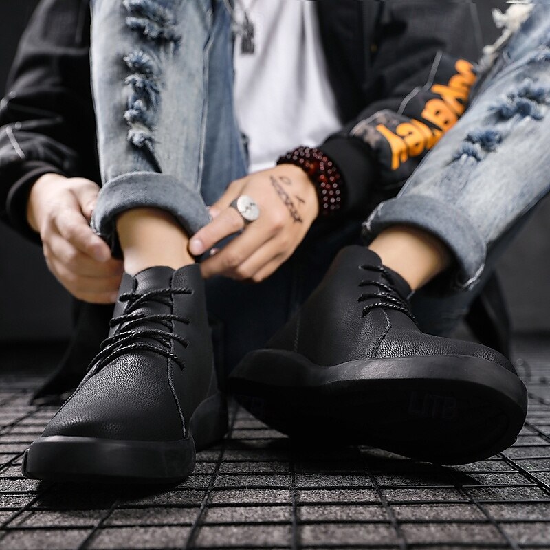 Men's Casual Faux Leather Ankle Boots with Lace-Up Design, Comfortable Non-Slip Sole, Perfect for Everyday Wear and Outdoor Activities 36