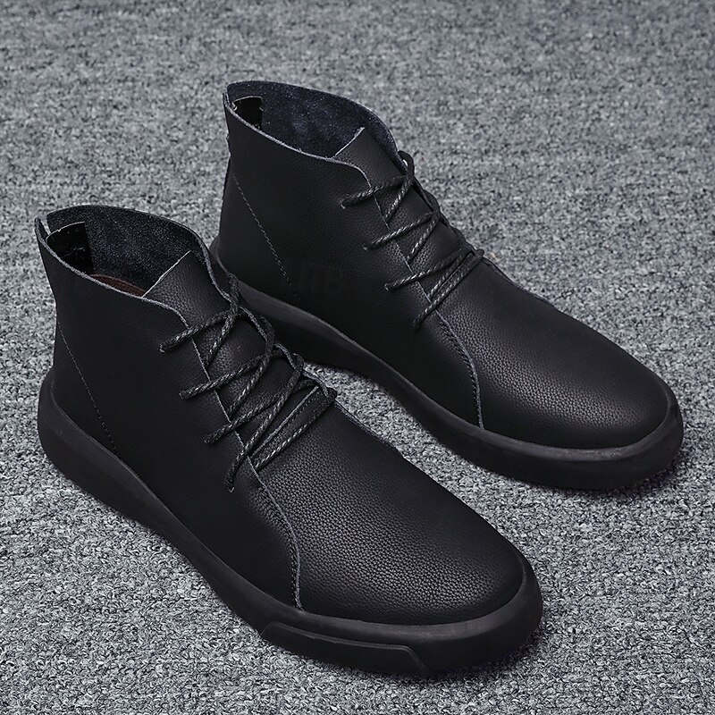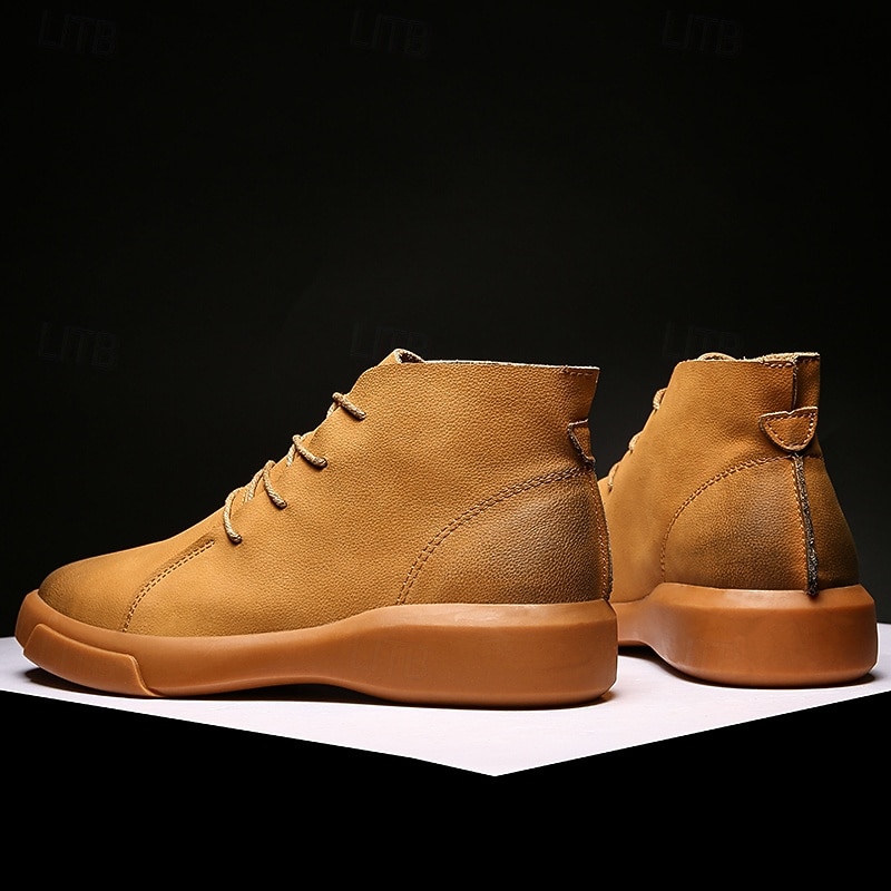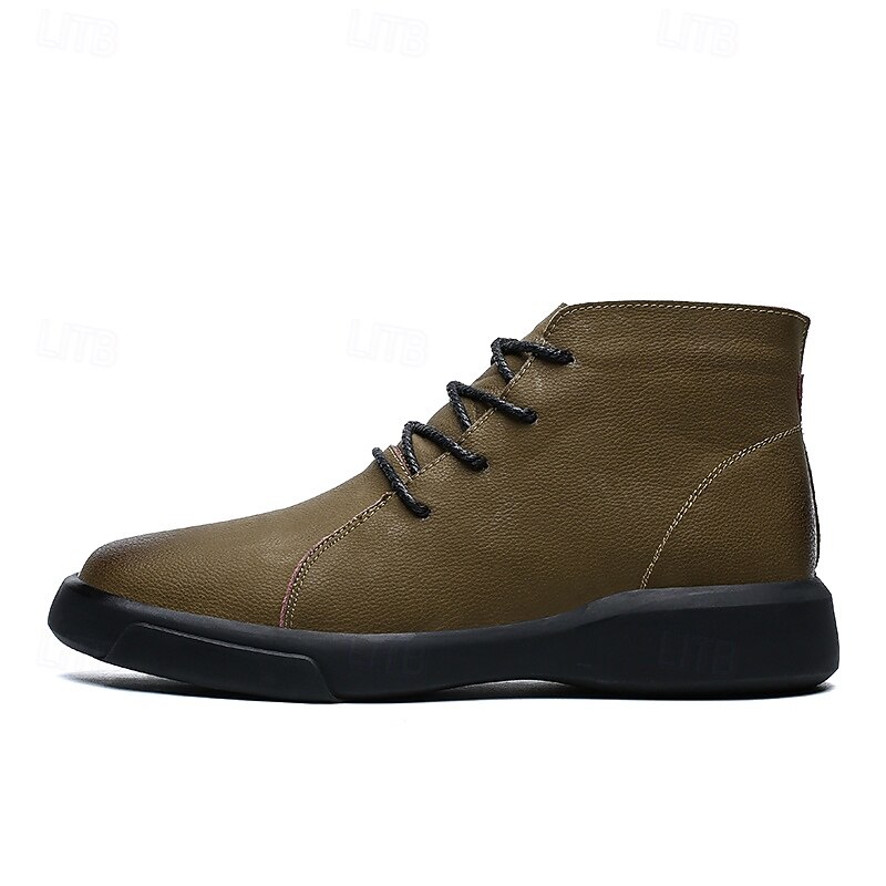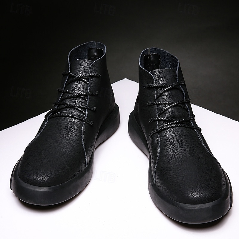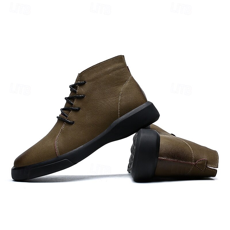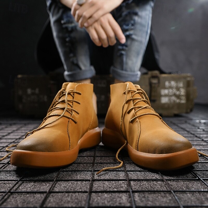 HOT ! Men's Casual Faux Leather Ankle Boots with Lace-Up Design, Comfortable Non-Slip Sole, Perfect for Everyday Wear and Outdoor Activities