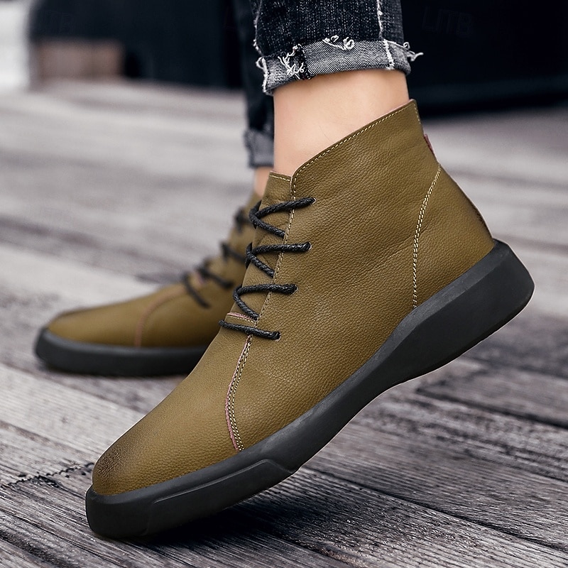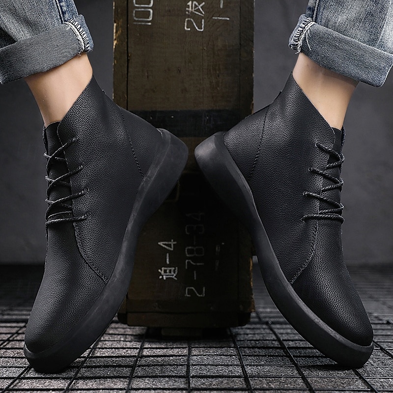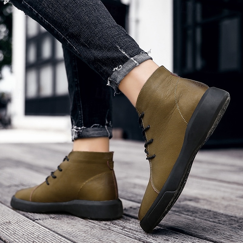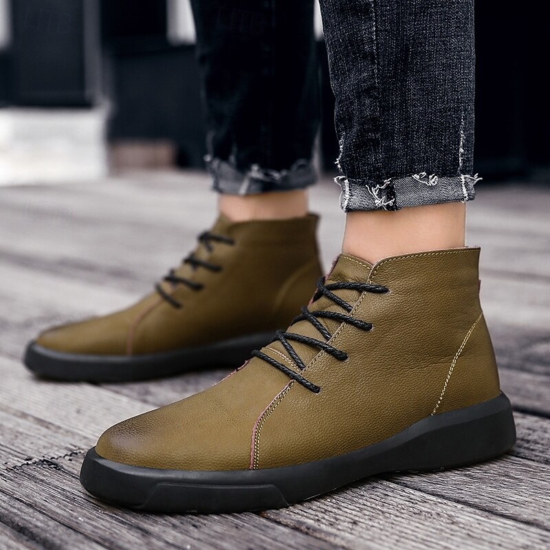 Men's Casual Faux Leather Ankle Boots with Lace-Up Design, Comfortable Non-Slip Sole, Perfect for Everyday Wear and Outdoor Activities 29