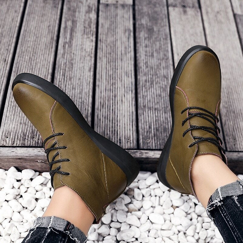 Highlights [Fabric] : Crafted from premium split leather, these men's ankle boots offer both durability and an elegant matte finish. The PU lining provides additional comfort, ensuring a cozy experience throughout the day. [Fit] : Featuring a classic round toe design, these boots provide a comfortable fit that accommodates the natural shape of the foot. The fleece lining offers warmth, making them suitable for various weather conditions. [Design Highlights] : The boots showcase a timeless lace-up closure, allowing for a secure and adjustable fit. The sleek, streamlined design is enhanced with detailed stitching, adding a touch of sophistication to any outfit. The sturdy rubber outsole ensures excellent grip, providing slip resistance on various surfaces. [Occasions] : Perfect for everyday wear and outdoor activities, these boots are versatile enough for both casual and work settings. Whether you're heading to the office or exploring the outdoors, their stylish look and functional design make them a reliable choice. [Size Range] : Available in a broad range of sizes, including US sizes 6 to 11.5, these boots cater to a variety of foot sizes to ensure a comfortable fit for every wearer.
