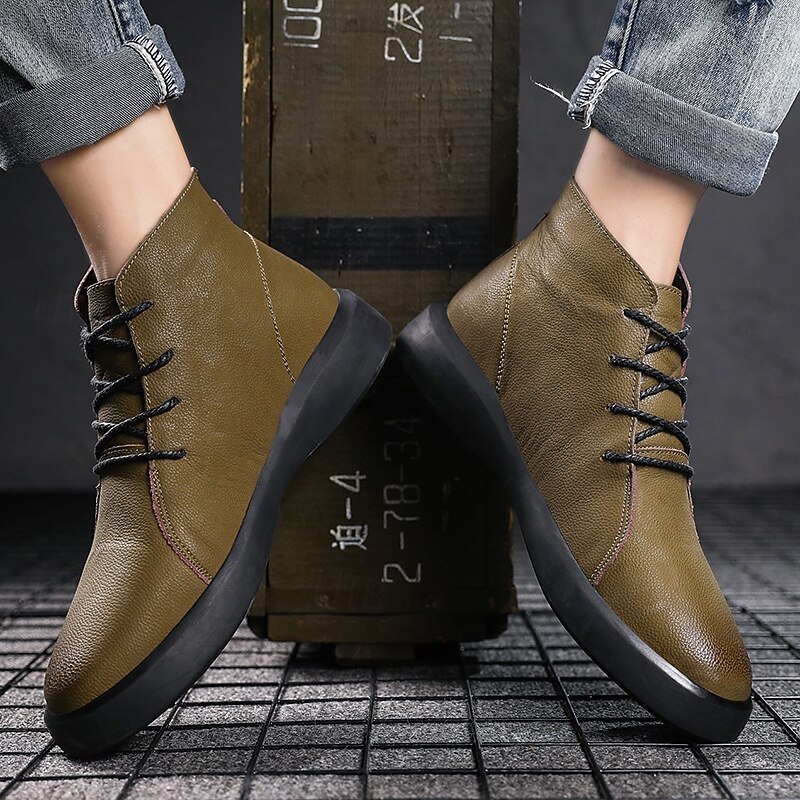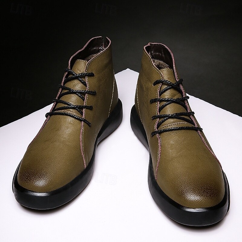 Men's Casual Faux Leather Ankle Boots with Lace-Up Design, Comfortable Non-Slip Sole, Perfect for Everyday Wear and Outdoor Activities 24