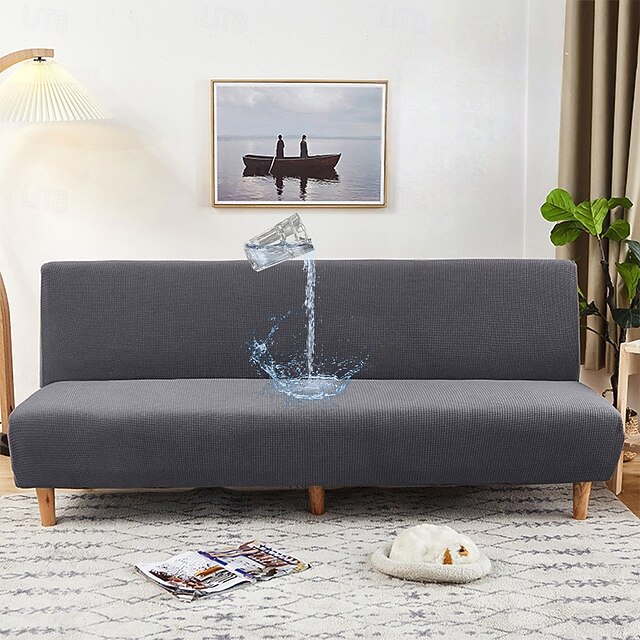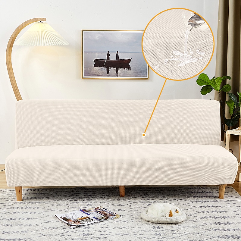 Water Resistant Sofa Bed Slipcover 1-Piece Stretch Burgundy Sofa Slipcover Armless Sofa Cover Furniture Protector Soft with Elastic Bottom for Kids, Spandex Jacquard Small Checks 10