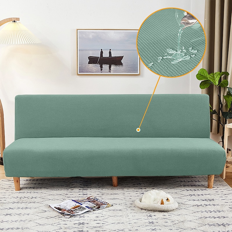 Water Resistant Sofa Bed Slipcover 1-Piece Stretch Burgundy Sofa Slipcover Armless Sofa Cover Furniture Protector Soft with Elastic Bottom for Kids, Spandex Jacquard Small Checks 11