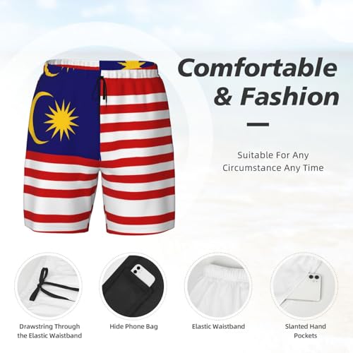 Malaysia Flag Breathable Fit Trends Men's Swim Trunks Board Short with Waist Elastic Band Swimming Trunks 4