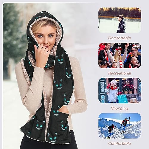 Women Winter Scarf 3 in 1 Hooded Hat Pullover Mitten Combo Cold Weather Neck Warmer 4