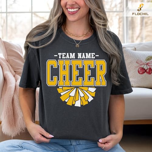 HOT ! FLOCHIL Personalized Cheer Mom Shirt for Women, Custom Cheer Shirts for Moms with Name, Team Name, Cheerleading Mom Shirt