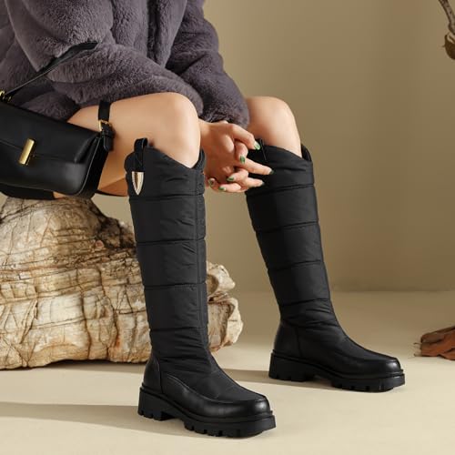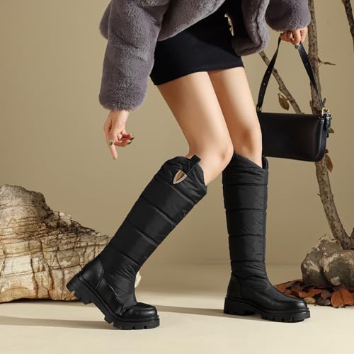Roimaash Women's Snow Boots Knee High Mid Heel Warm Winter Boots 6