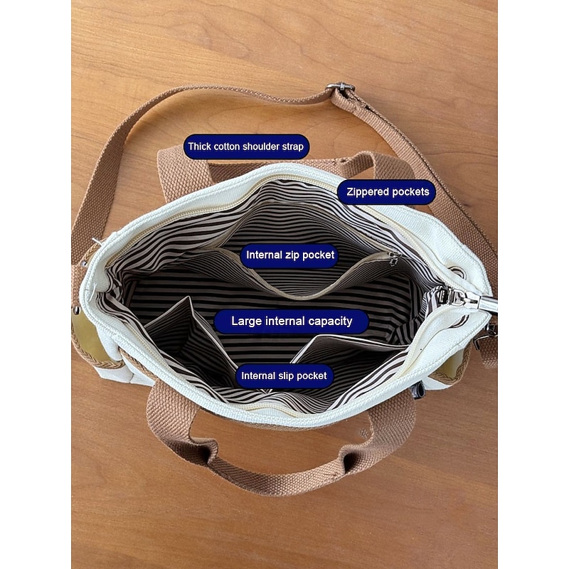 Women's Canvas Tote Shoulder Bag – Casual Two-Tone Handbag with Large Capacity, Multi-Pocket Design, Lightweight Crossbody Purse for Daily Use, Travel & Mom Essentials 12