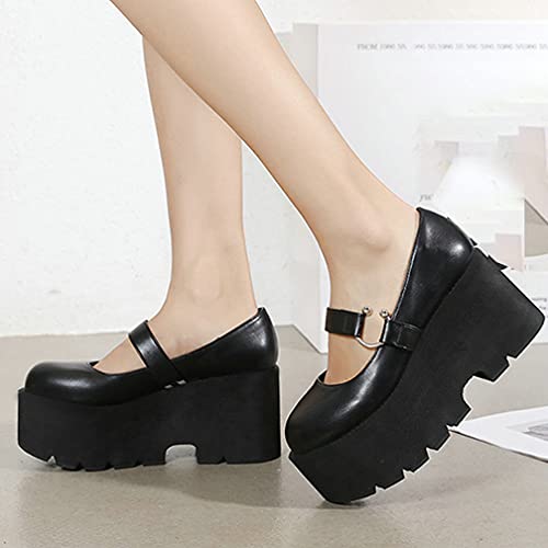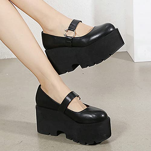 Agodor Women's Gothic Cosplay Lolita Shoes Goth Mary Jane Platform High Heel Chunky Pumps 6