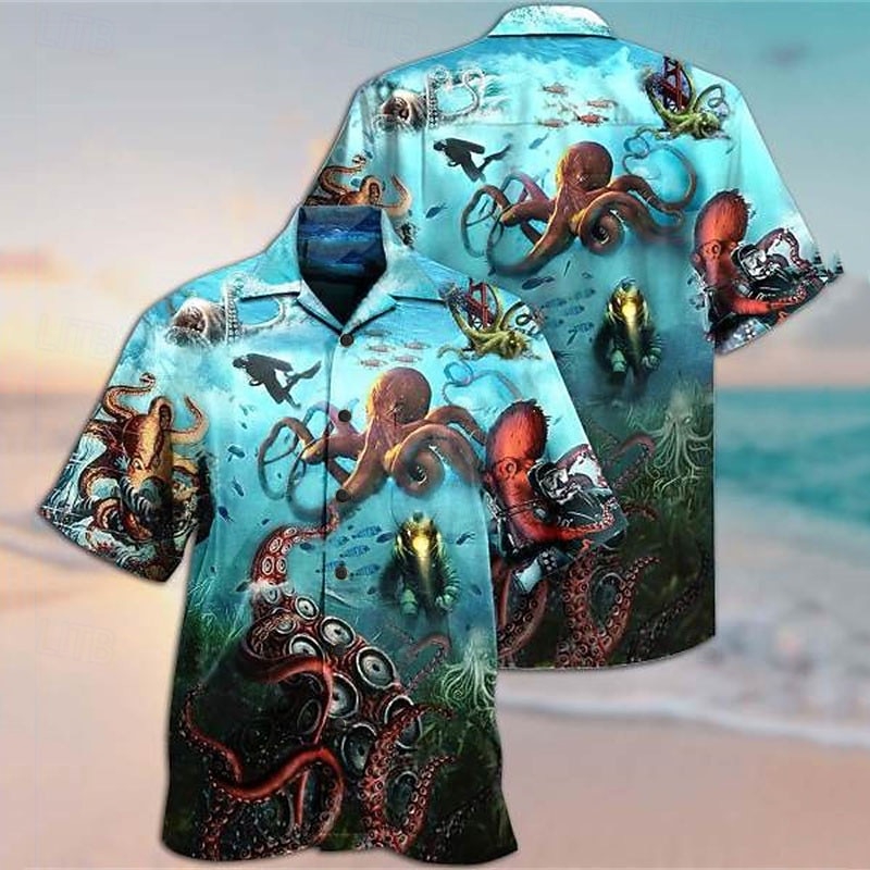 More information about Men's Tropical Octopus Shirt Summer Hawaiian Shirt Camp Collar Shirt Short Sleeve Shirt Turndown Fashion Designer Casual Street Casual Daily Blue-Green Sea Blue Yellow S M L