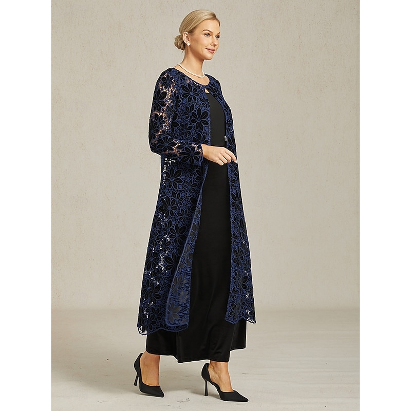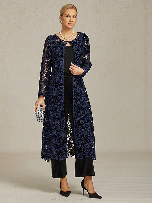 Women's Lace Tops Elegant Romantic Pretty Crew Neck Navy Blue Summer Spring Fall 3
