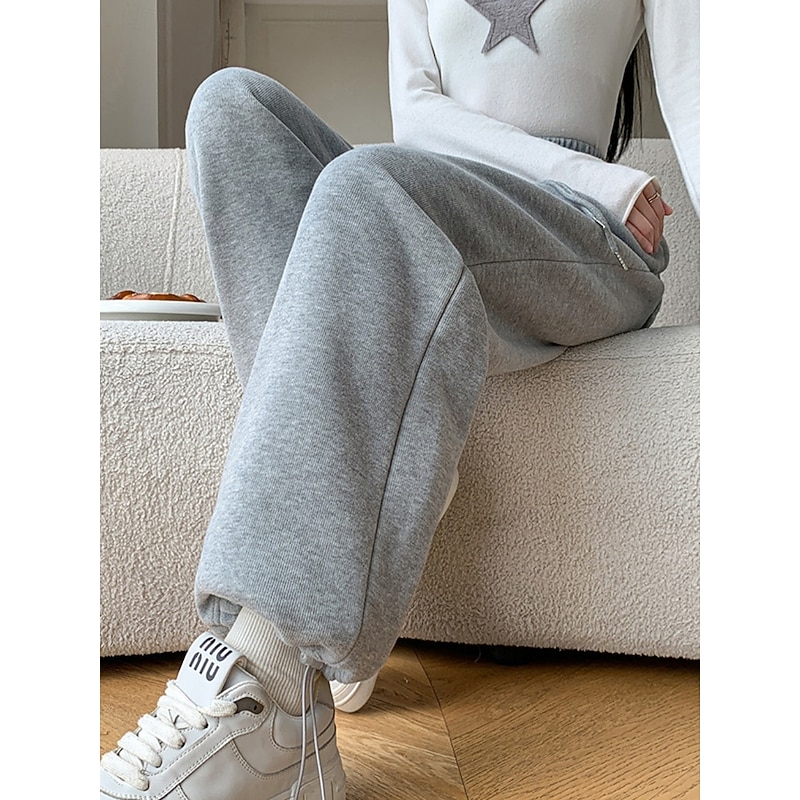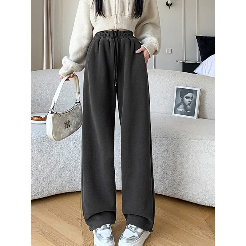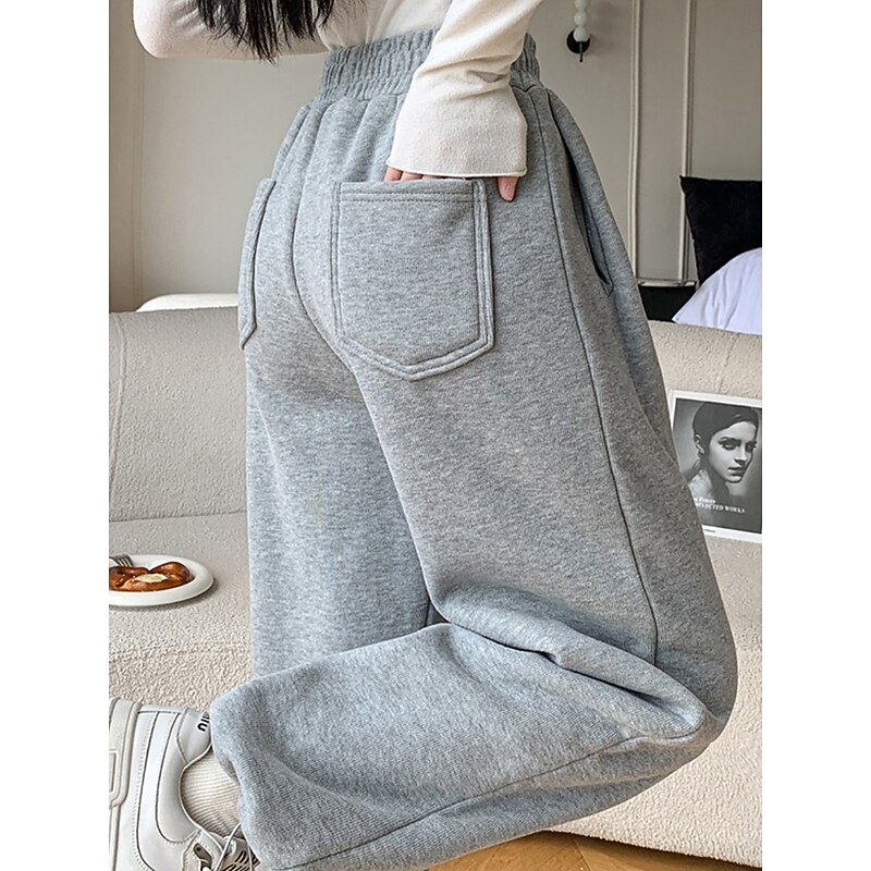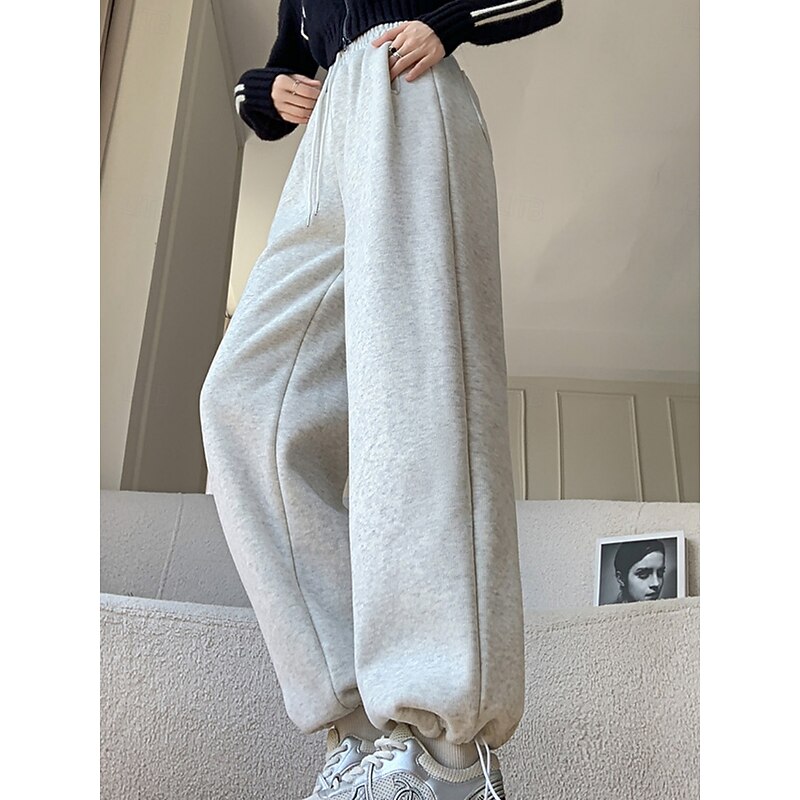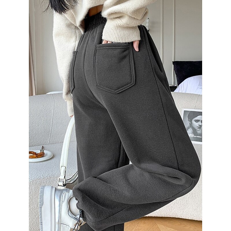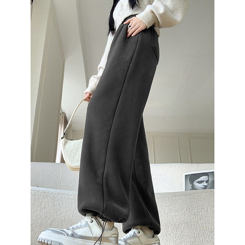 More information about Women's Sweatpants Fleece Pants Chinos Fashion Streetwear Basic Full Length High Waist Plain Pocket Elastic Waistband Comfy Soft Comfortable High Elasticity Outdoor Street Winter Dark-Gray Light Grey