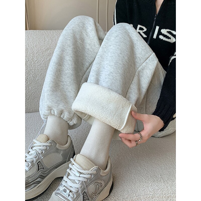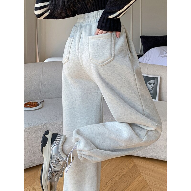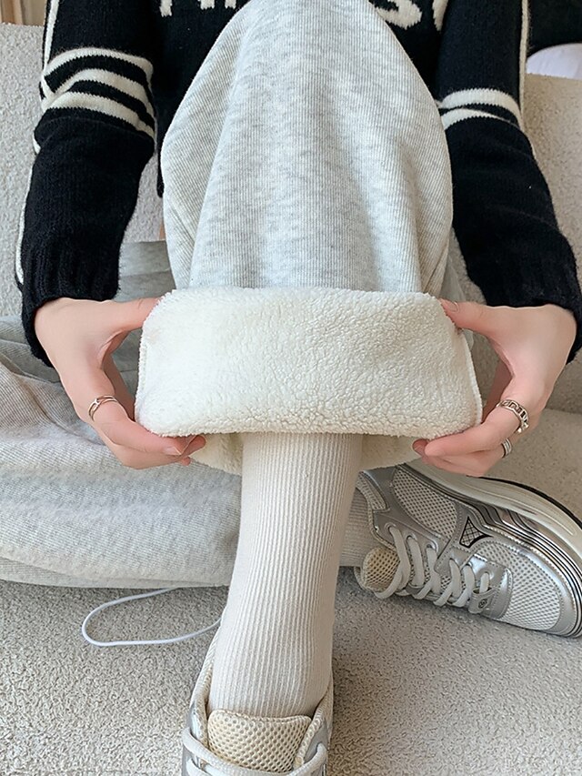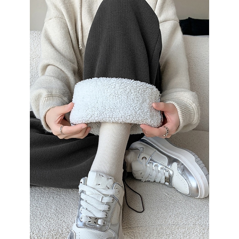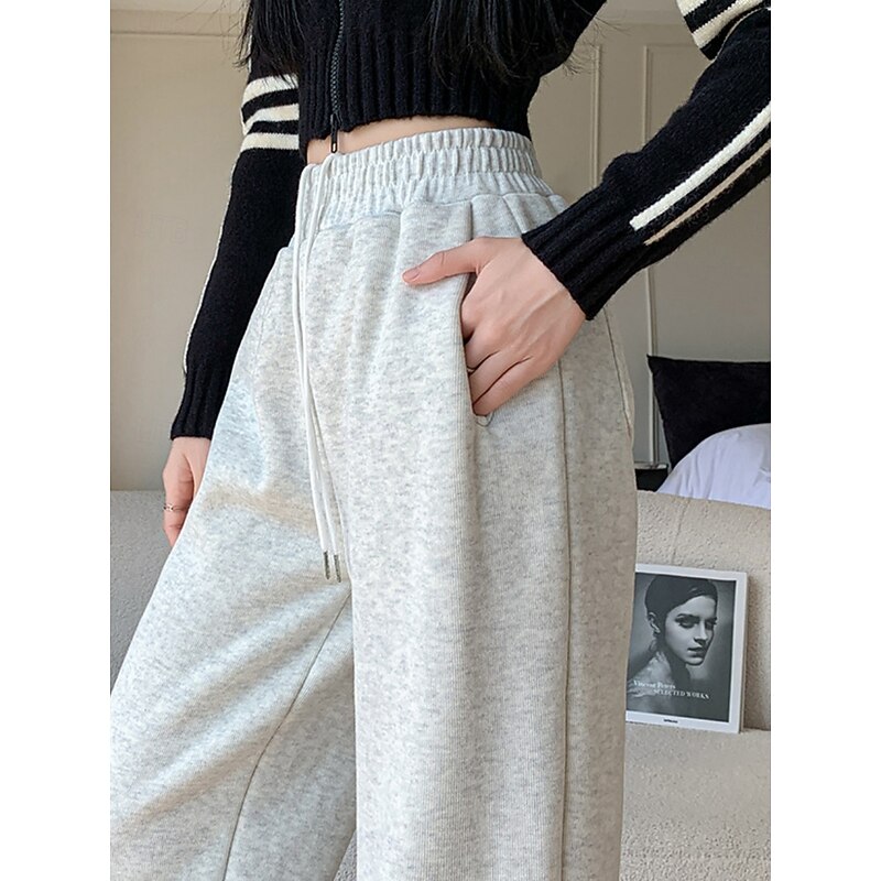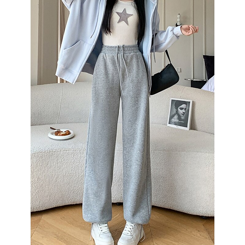 More information about Women's Sweatpants Fleece Pants Chinos Fashion Streetwear Basic Full Length High Waist Plain Pocket Elastic Waistband Comfy Soft Comfortable High Elasticity Outdoor Street Winter Dark-Gray Light Grey
