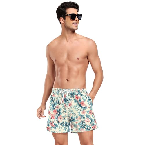 More information about xigua Vintage Floral Pattern Mens Swim Trunks with Liner, 5 inch Quick Dry Mens Boardshorts for Beach