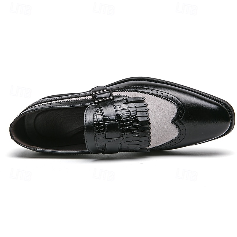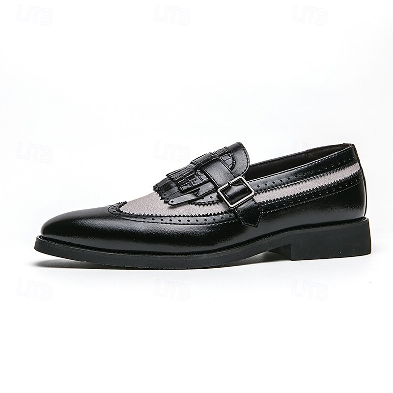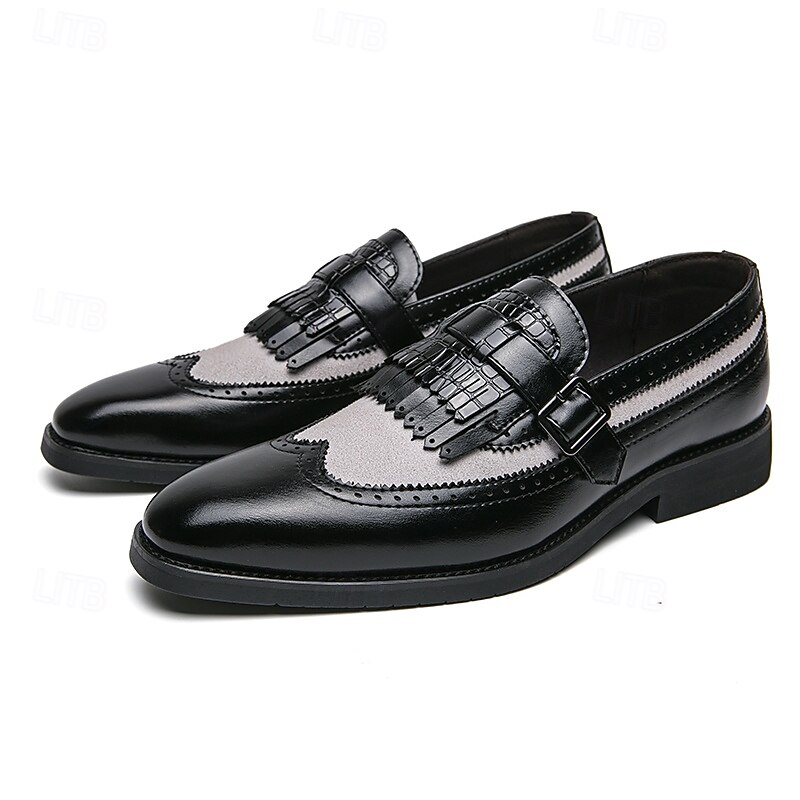 HOT ! Men's Retro Faux Leather Loafers - Classic Brogue Design with Buckle and Fringe Detail, Versatile and Stylish Footwear