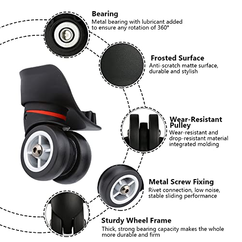 Luggage Replacement Wheels Heavy Duty PVC Universal Swivel Casters for Suitcases Quiet Roller Wheels with Shock Absorption Easy Install Spare Parts for Travel Luggage Trolley Cases 4
