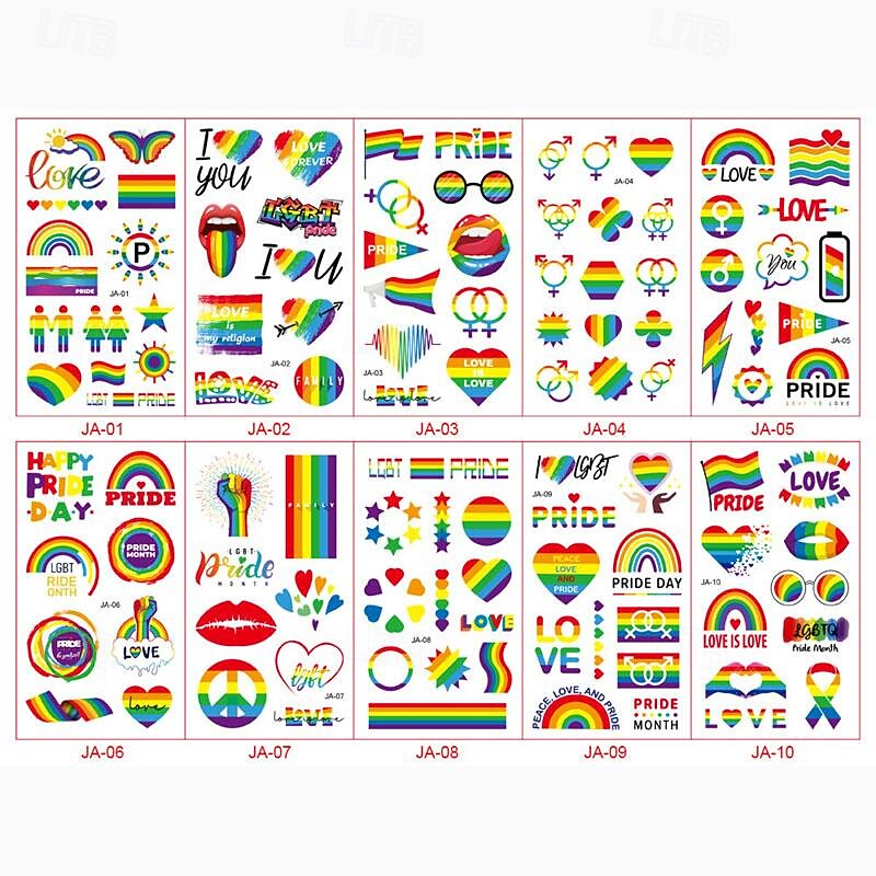 10PCS Rainbow Pride Moon Tattoo Sticker Waterproof and Sweatproof Disposable Party and Party Event Temporary Face Sticker 5