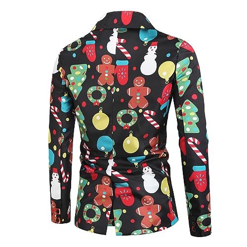 Mens Christmas 3-Piece Tuxedo Set Long Sleeve Prints Tux Jacket Vest Pants with Bow Tie Christmas Party Suits 3