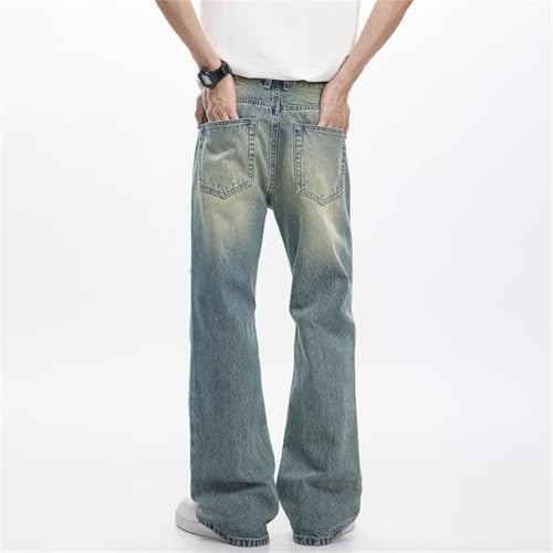 • Details: These men's flared jeans are durable, equipped with zipper placket, metal stud buttons, reinforced reinforcement and riveted front hand pockets for added durability
