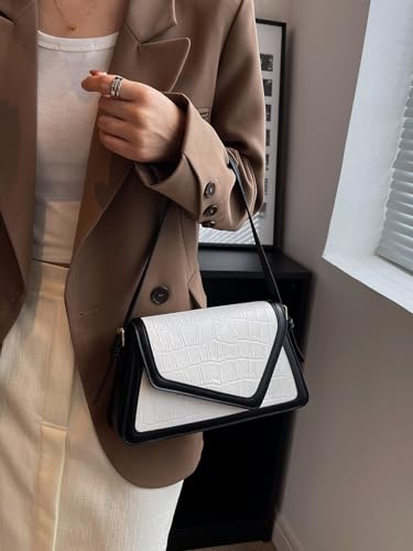 HOT ! QWINEE Women's Crocodile Embossed Flap Bag Colorblock Shoulder Handbag Contrast Binding Clutch Purse