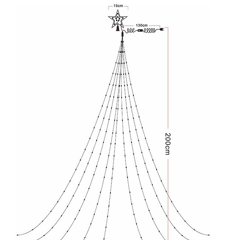 LED Christmas Tree Light Pentagram Waterfall Solar Lights 198 LEDs Waterproof Outdoor Garden Decoration Christmas Lights EU Plug 14