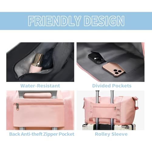 • 【Expandable and Large Capacity Weekender Bag】:To accommodate more items, we have increased the length and height of the women's weekend bag, measuring 尺寸inches. Enough to accommodate daily necessities such as clothes, shoes, toiletries, laptops, iPad, etc. for 3-5 days.