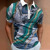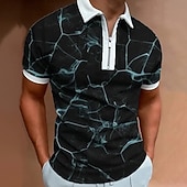 More information about Men's Abstract Marble Zip Polo Short Sleeve Turndown Casual Daily Trendy Sports & Outdoor Athleisure Casual Daily Zipper Summer Black Green ash-colored