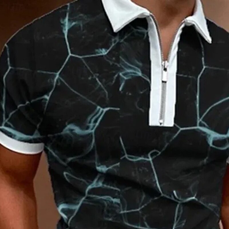 HOT ! Men's Abstract Marble Zip Polo Short Sleeve Turndown Casual Daily Trendy Sports & Outdoor Athleisure Casual Daily Zipper Summer Black Green ash-colored