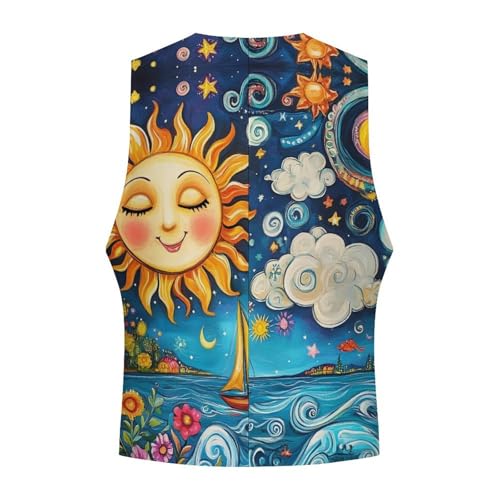 Sun And Moon Face Men's Suit Vests Dress Vest V-Neck Waistcoat Slim Business Formal with Pocket 1