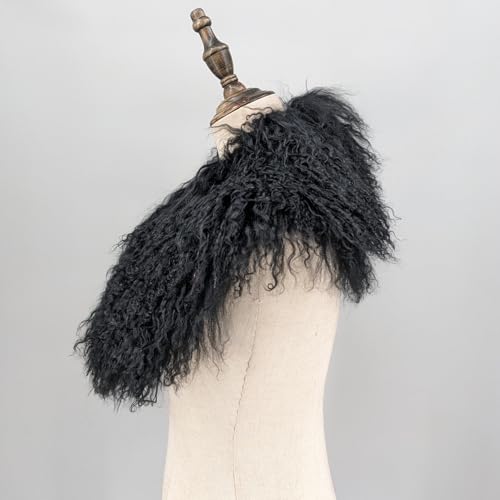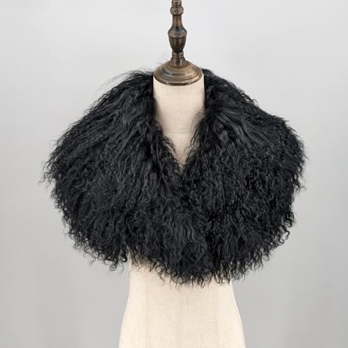 LVCOMEFF Women Real Mongolian Lamb Fur Scarf Neck Warmer Curly Shaggy Collar for Winter Large 1