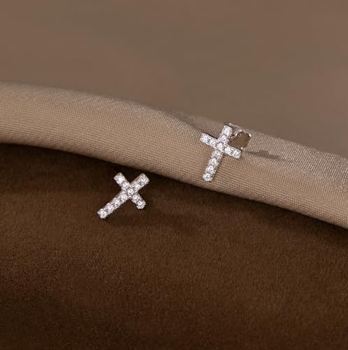 SLUYNZ Solid 925 Sterling Silver Cross Earrings Stud for Women Teens Small CZ Stud Earrings 5