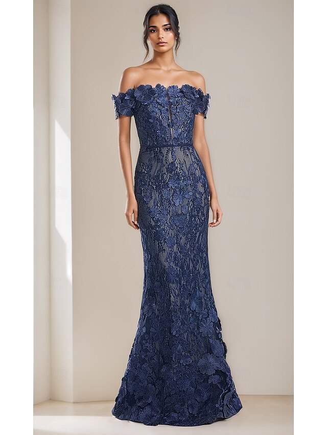 HOT ! Floral Embroidered Lace Appliques Mermaid / Trumpet Evening Gown Elegant Dress Formal Wedding Floor Length Sleeveless Off Shoulder 2025