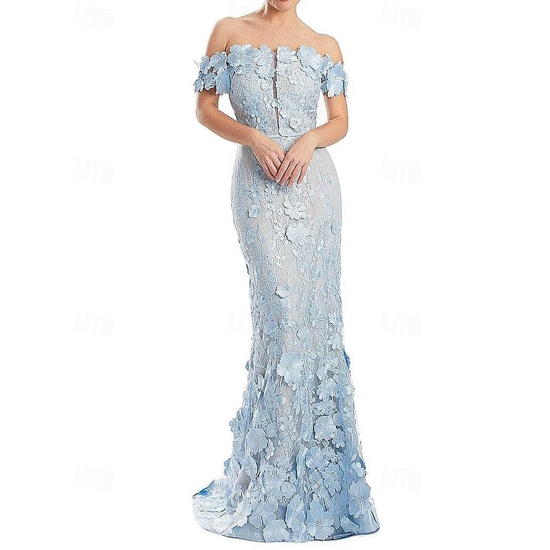 More information about Floral Embroidered Lace Appliques Mermaid / Trumpet Evening Gown Elegant Dress Formal Wedding Floor Length Sleeveless Off Shoulder 2025