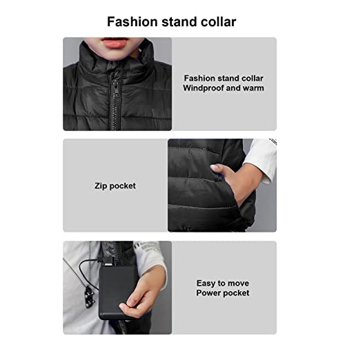 Kids Heated Vest, Heating Jacket for Children, USB Electric Heated Jacket with13 Heating Zones, Warm Vest for Boys Girls Outdoor Activities Home Leisure Black(140cm) 5