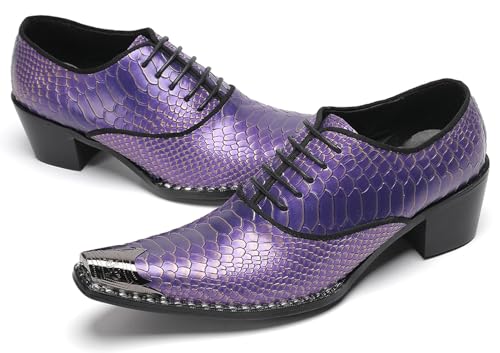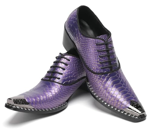 HOT ! Men’s Leather Oxfords Purple Dress Casual Shoes – Metal Pointed Toe Lace-Up Oxford, Fashion Formal Shoes for Weddings, Prom, Parties, Business & Evening Wear