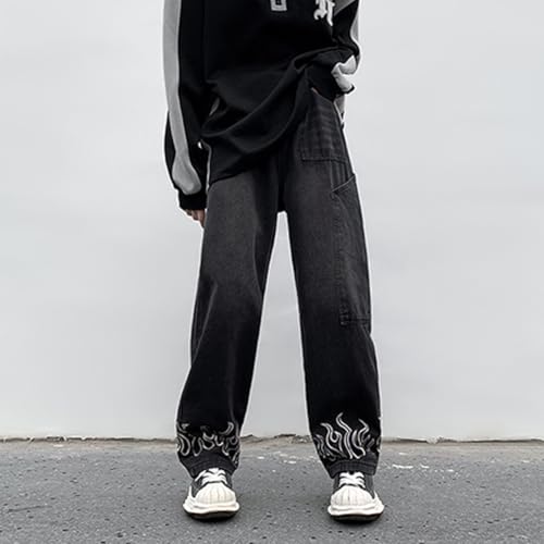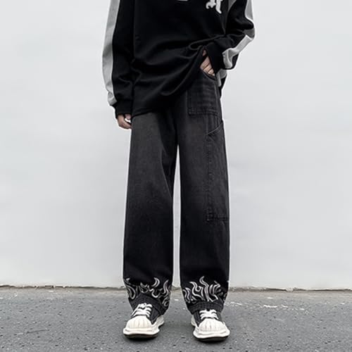 XYGJZ Y2k Baggy Denim Jeans for Men Flame Print Straight Leg Hip Pop Denim Pants Streetwear 7