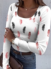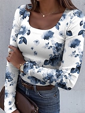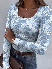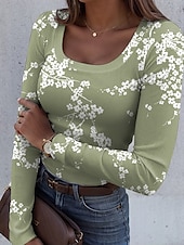 More information about Women's T shirt Long Sleeve Ribbed Graphic Square Neck Long Sleeve Casual Floral Classic Regular Tops Daily Print Light Green Pink Red Blue Dusty Blue Spring Fall Prefall