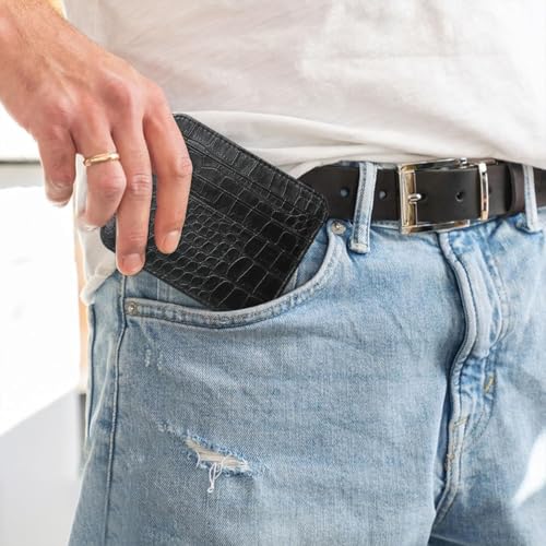 • 【Ultra-Slim Design】- Crafted from crocodile-patterned PU leather, our card holder wallet is exceptionally thin (just 0.2 inches) and lightweight, making it perfect for front pocket carry. Its soft feel and stylish appearance ensure that it fits seamlessly into any outfit, whether casual or formal.