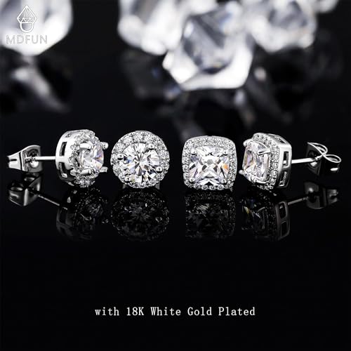 HOT ! MDFUN Halo Stud Earrings 18K Gold Plated Round & Square Cubic Zirconia Earrings Set for Women