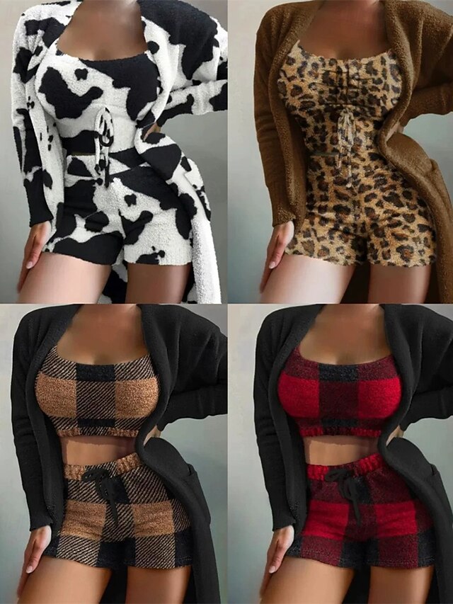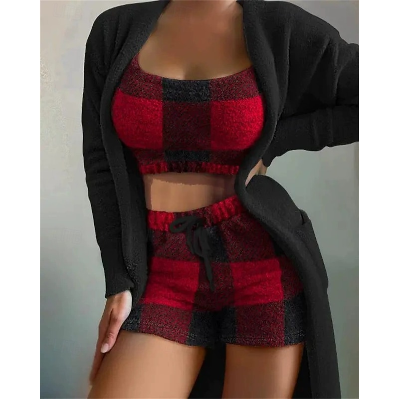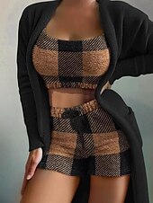 More information about Women's Loungewear Fashion Casual Pure Color Elastic Waist Shorts Vacation Home Bed Long Sleeve Crew Neck Black White Red Khaki Fall Winter Tailored Fit