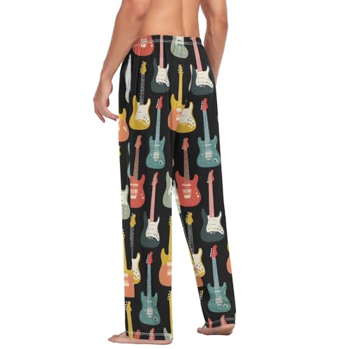 Men's Pajama Pants Pj Bottoms Lounge Sleepwear with Pockets Colorful Guitars Print S 1