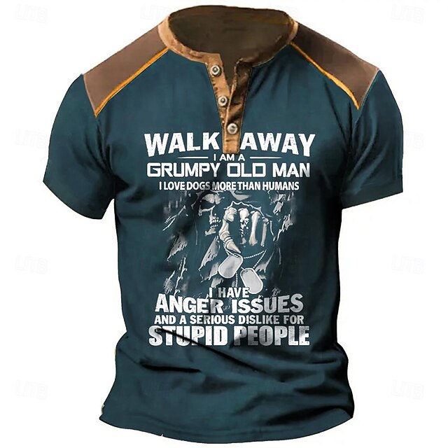 More information about Men's Text Reaper T shirt Henley Shirt Short Sleeve 3D Print Designer Retro Vintage Street Casual Daily Summer Spring Black Blue Green Henley Henley T-Shirt