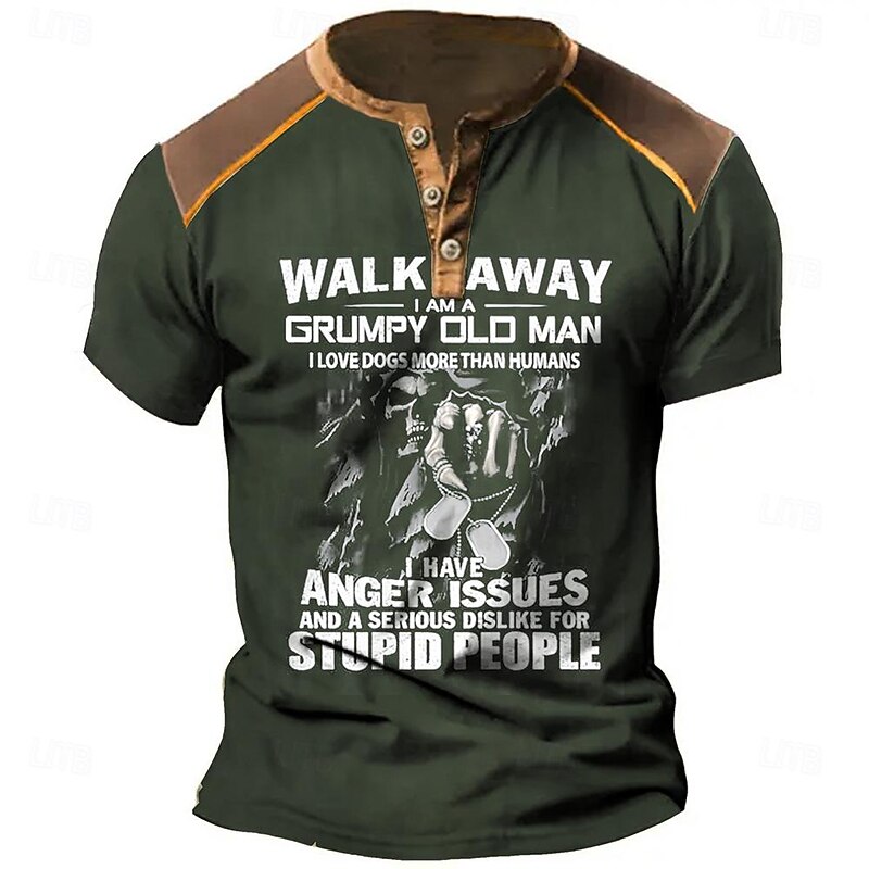 HOT ! Men's Text Reaper T shirt Henley Shirt Short Sleeve 3D Print Designer Retro Vintage Street Casual Daily Summer Spring Black Blue Green Henley Henley T-Shirt