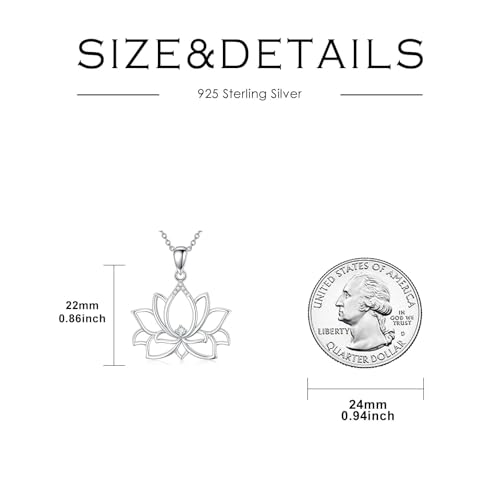 Material: Sterling SilverMetal type: Sterling SilverClasp type: LobsterGem type: Diamond[Diamond Lotus Necklace]: This charming laboratory-grown diamond necklace is inspired by lotus, perfectly combining purity and nobility with elegant magnificence, exuding brilliant light, showing elegant taste and fashion sense.[Lab Grown diamonds]: This lotus necklace is inlaid with lab grown diamonds (D color, VVS clarity), which have the same properties as natural diamonds and are equally dazzling. Laboratory-grown diamonds are an environmentally friendly and ethically sustainable alternative to mined diamonds.[Details]:Sterling silver Lotus Necklace Size: 0.86 x 0.7 Inch, Sterling Silver Chain Length: 18 + 2 Inch. Diamond Details: 0.025 CTTW, D color, VVS clarity.[Special Choice]: Exquisite jewelry box packaging, convenient for gift giving, it is a thoughtful gift for your mother, wife, female friend, partner, bridesmaid, or best friend, and also a great gift for birthdays, Christmas, Mother's Day, Valentine's Day, anniversaries and weddings.[Packaging]: 1 Lotus Necklace and 1 Exquisite Gift Box - Thoughtfully packed and ready to delight. faultless for everyday use. premium materials and excellent craftsmanship ensure long-lasting durability.
