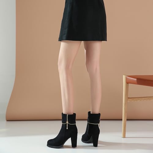 Gicoiz Womens Elegant Block High Heeled Ankle Cuff Chelsea Boots 5