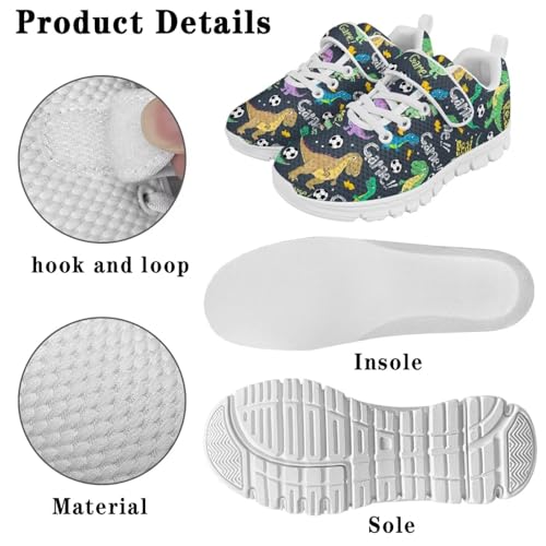 Little Kid Boys Girls Shoes Lightweight Mesh Breathable Adorable Running Sneakers for Little Kid and Big Kid White Sole Dinosaur Soccer Pattern