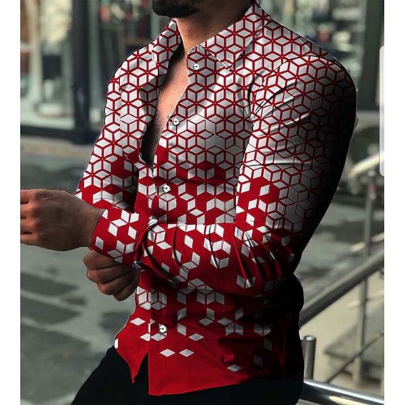 More information about Men's Geometric Pattern Geometry Shirt Button Up Shirt Long Sleeve Fashion Designer Casual Outdoor Vacation Daily Fall & Winter Collar Print Button-Down Black Red Navy Blue Blue Green