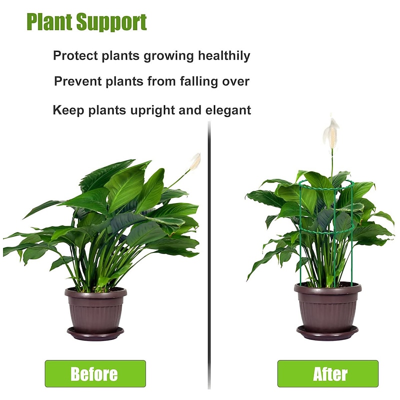 Highlights - Easy to Assemble: No tools required, simple assembly process - Protects and supports plant growth: Keeps plants upright and healthy against strong wind, heavy rain, or their own weight - Made of durable fiberglass: Does not brittle or fade in the sun, stands firmly and can be reused - Natural green appearance: Blends perfectly with plants for an elegant look - Versatile: Suitable for tomatoes, potted plants, climbing plants, vegetables, fruits, flowers, both outdoor and indoor use. Provides continuous support throughout plant's growth.