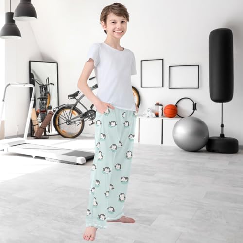 Boy's Pants Baby Penguin Sleep Green Jogger Pants Elastic Waist Long Bottoms Trousers with Pockets 6-14 Years 7