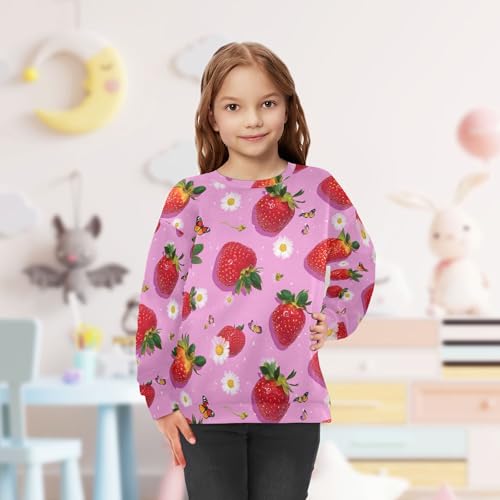 JUNZAN Fresh Strawberries Fruit Hot Pink Big Girls Hoodie Sweatshirt Long Sleeve Tops Clothing Shirts Camping 4T 5